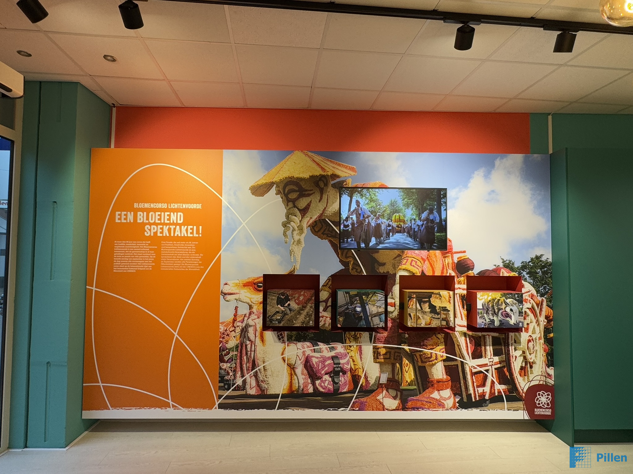 De wanden van het Bloemencorso, de kerkenpaden en de Veenbeleving zijn door een andere partij beplakt met prints, wat de thema’s nog meer tot leven brengt.